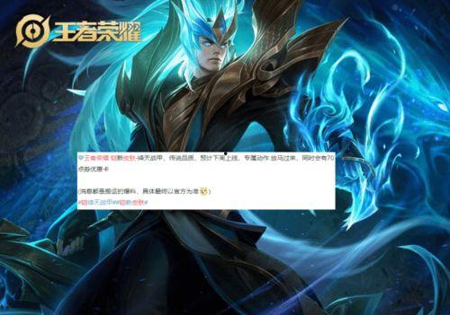 自从王者荣耀上线以来,英雄们的皮肤一直是玩家们津津乐道的话题。而这次,铠的新皮肤可谓是引发了全民热议。据悉,这款皮肤名为“苍穹之怒”,以蓝色为主色调,充满了神秘感和力量感。